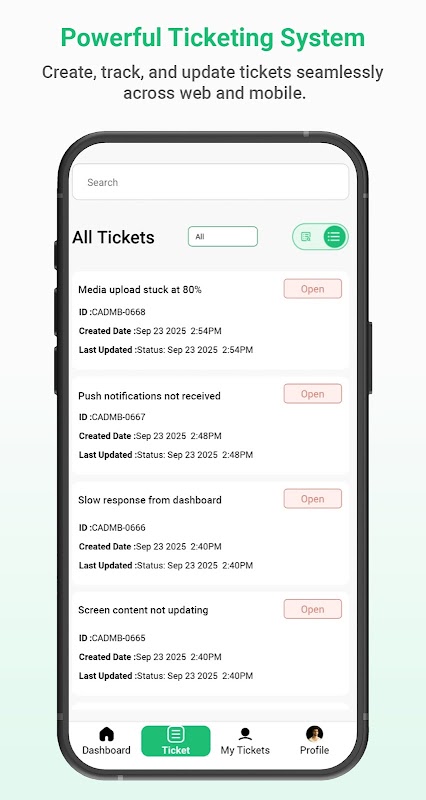 -> حقیقی وقت میں سپورٹ ٹکٹ بنائیں، تفویض کریں اور ٹریک کریں۔