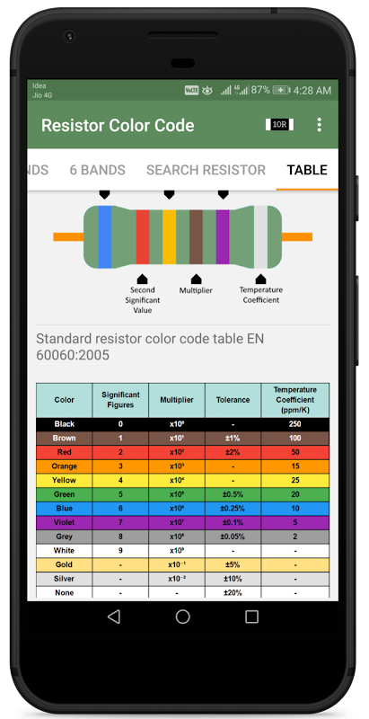 App provides a very simple and efficient way to calculate Resistor Color Code