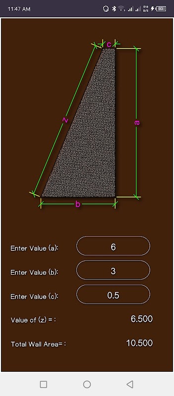 area of the section, remaining area of the section and full area of retaining wall.