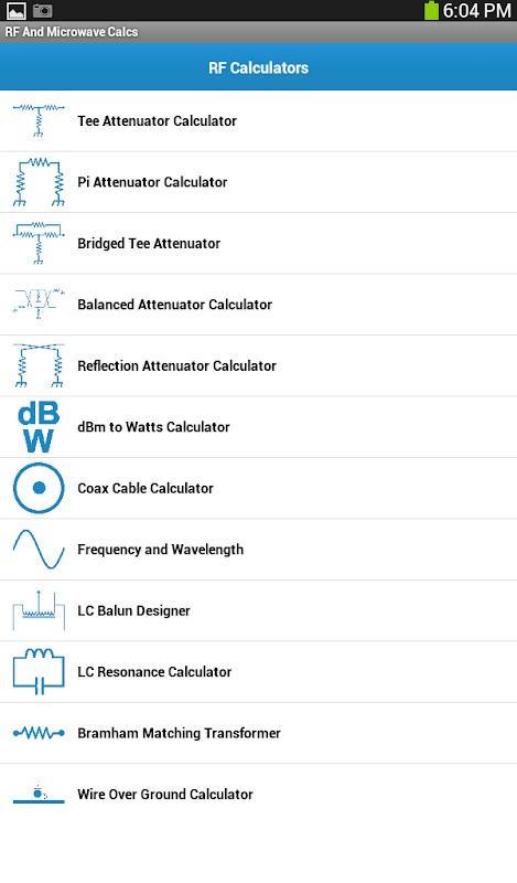 This app is for RF and microwave students, engineers and hobbyists. App has many RF calculators and resources that will help you in study and in professional life.