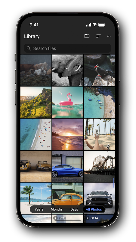 1. وسیع حسب ضرورت اختیارات کے ساتھ بدیہی اور صارف دوست انٹرفیس۔ آپ مواد کو فولڈر کے لحاظ سے یا اپنے آلے پر تمام میڈیا فائلوں کو تاریخ، قسم، یا توسیع کے لحاظ سے فوری گروپ بندی کے ساتھ دیکھ سکتے ہیں۔