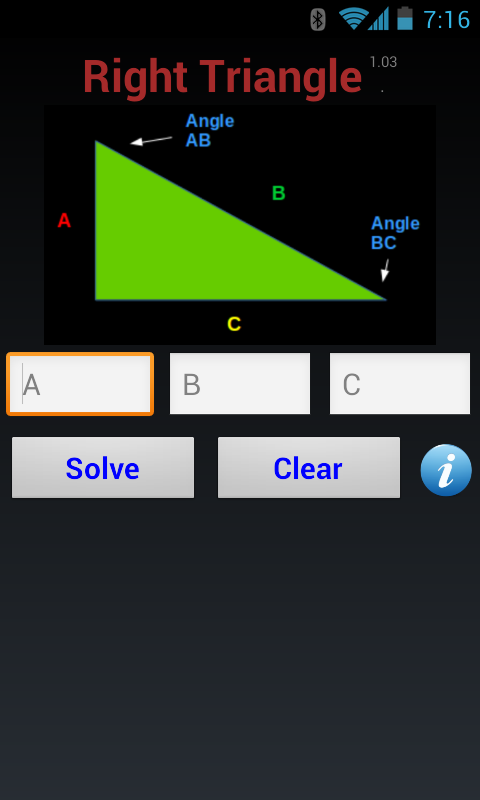 Basic ad-free app to calculate sides, angles of a right angle triangle