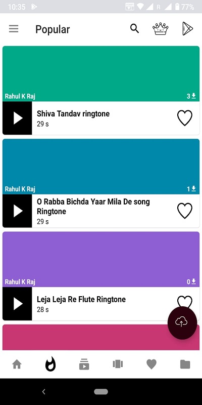 App allows user to download and set ringtones in just one clicks.Set them as your alarm tones,notification tone or even message tone through "set ringtone" button,Share buttons are displayed below the ringtones.