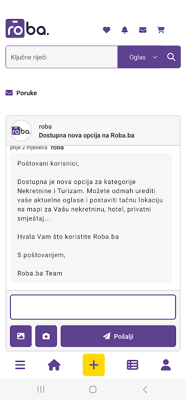 Roba.ba ایک آن لائن کلاسیفائیڈ اور ٹریڈنگ پلیٹ فارم ہے، خریداروں اور فروخت کنندگان کے لیے ملاقات کی جگہ، آپ کی کمپنی کے لیے کاروباری مواقع کی جگہ یا ایسی جگہ جہاں آپ آسانی سے گیراج سے اضافی اشیاء سے چھٹکارا حاصل کر سکتے ہیں۔