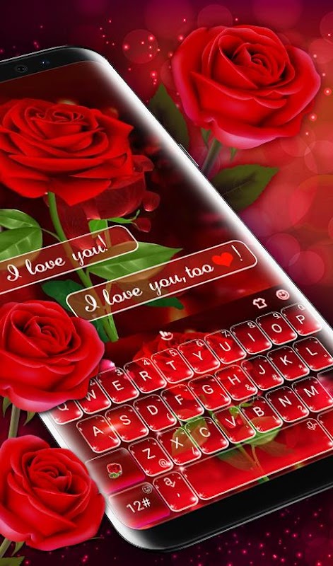 Romantic Flower Red Rose Sparkling Keyboard Theme 6.5.10.2019