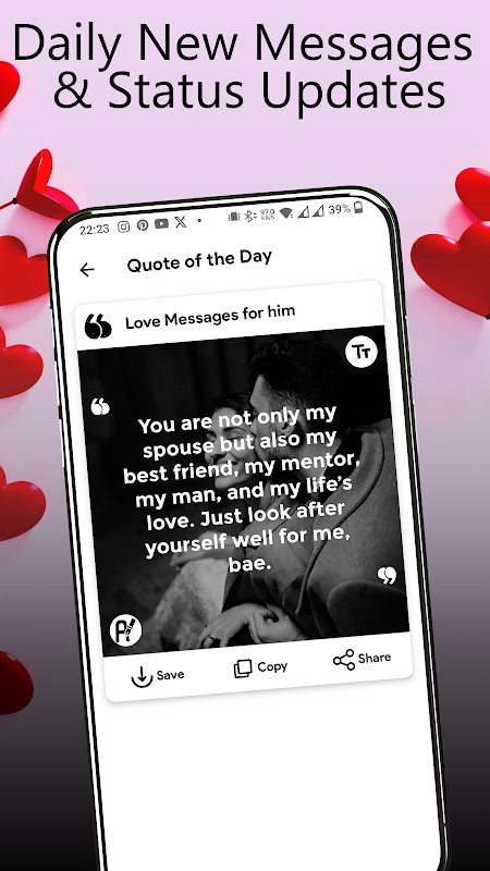 تمام پیغامات احتیاط کے ساتھ تیار کیے گئے ہیں اور جوڑوں کو قریب لانے کے لیے ڈیزائن کیے گئے ہیں، چاہے کوئی بھی موقع ہو۔ چاہے آپ محبت میں گرفتار ہو رہے ہوں، اس میں گہری ہو، یا صرف کسی کو یاد دلانا چاہتے ہو کہ وہ کتنے خاص ہیں — یہ ایپ محبت کے اظہار کو آسان محسوس کرتی ہے۔