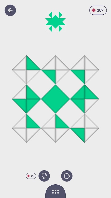 مقصد دیئے گئے آرٹ ورک کے ساتھ ٹائلوں کو ملانا ہے۔ ہیرے کے سائز کے ٹکڑوں کو انفرادی طور پر اپنے محور پر گھمانے کے لیے تھپتھپائیں، صحیح پوزیشن میں رکھیں اور ٹکڑوں کو ایک آخری موڑ کے ساتھ آرٹ ورک میں تبدیل کریں: اپنی انگلی کو اسکرین پر سلائیڈ کریں اور جادو کا تجربہ کریں!
