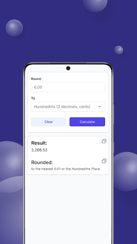 1. **فوری راؤنڈنگ**: اپنا نمبر درج کریں اور اپنی مطلوبہ اعشاریہ جگہ یا قریب ترین پوری کا انتخاب کریں۔ اپنا گول نمبر فوری طور پر حاصل کریں۔