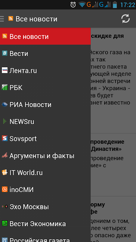 Простой и удобный способ чтения новостей основных информационных ресурсов России: