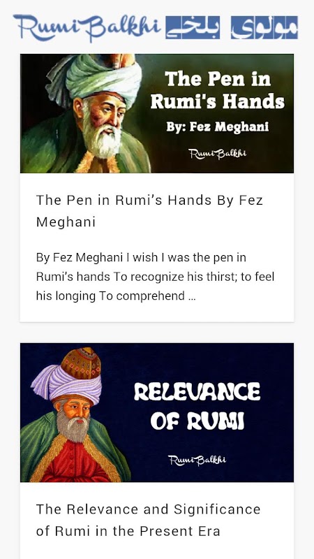 This application contains hundreds of quotes by Maulana Jalaluddin Balkhi Rumi.