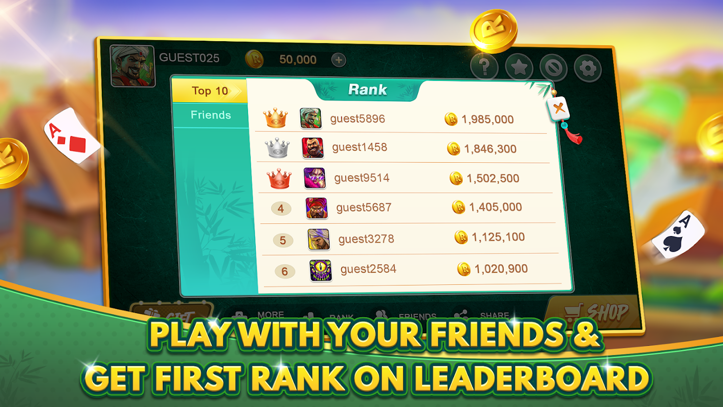 ہموار گیم پلے، تیز میچ میکنگ، اور پریمیم گرافکس کے ساتھ اپنے اینڈرائیڈ فون یا ٹیبلٹ پر حتمی آن لائن ملٹی پلیئر رمی تجربہ کھیلیں۔