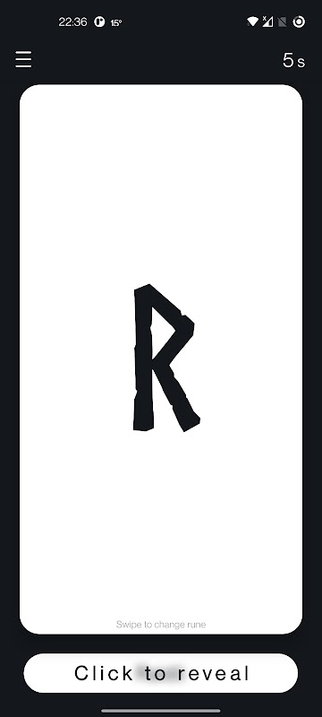 رونز کو تبدیل کرنے کے لیے بس کارڈز کو سوائپ کریں، جب آپ یا آپ کا دوست جواب ظاہر کرنے کے لیے تیار ہو، ظاہر کرنے کے لیے نیچے والے بٹن پر کلک کریں۔ اختیاری طور پر، آپ چیلنج کو بڑھانے کے لیے اوپر دائیں جانب ٹائمر کے بٹن پر کلک کر سکتے ہیں، جب آپ یا آپ کے دوست جواب دیں گے تو ایپ خود بخود رنک فلیش کارڈز کے ذریعے چکر لگائے گی۔