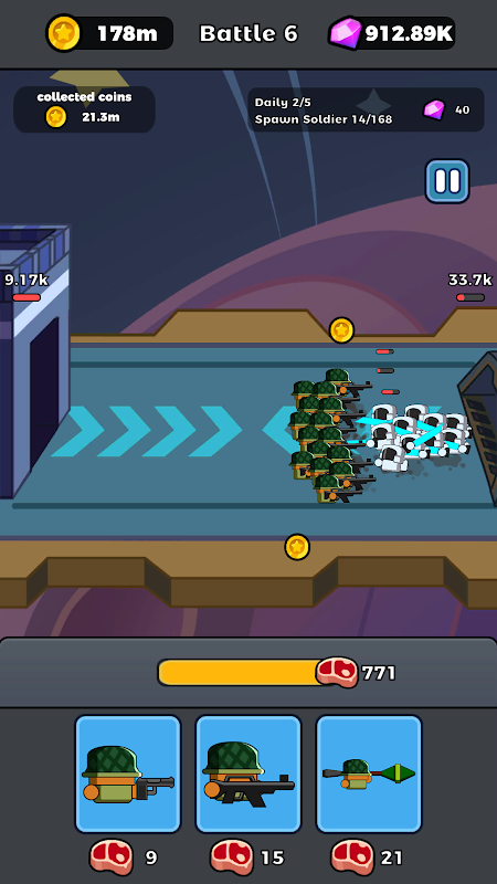 متنوع ہتھیار اور ہنر: ہتھوڑوں اور لکڑی کی تلواروں سے لے کر توپوں اور مستقبل کی ٹیکنالوجی تک، اپنے فوجیوں کو اپنے پلے اسٹائل سے مماثل آلات کے ہتھیاروں سے لیس کریں۔