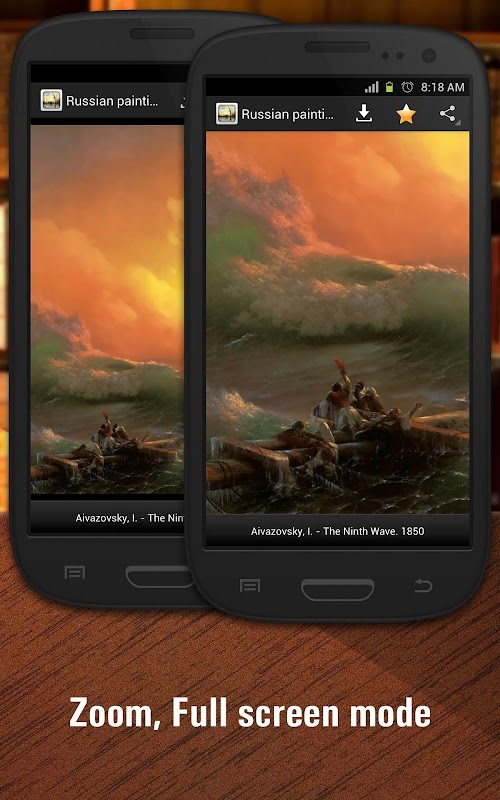 ایپلی کیشن میں 250 عظیم روسی مصوروں کی 1500 کام شامل ہیں۔ ایوازوسکی ، ششکن ، ساوراسوف ، ریپین ، لیویتان ، وربل ، روئریچ ، سورییکوف ، واسیلیف اور دیگر مشہور مصور۔