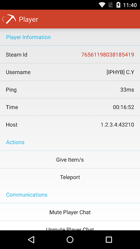 RustyTool allows you to manage connections to multiple servers. Once connected you can see the details of players connected to your servers, with the opportunity to see their Steam profile directly, kick, or ban. You're also able to chat with players using the Chat view and send commands directly to the server via the Console view.