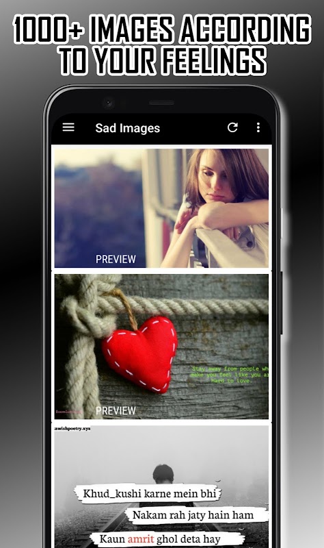 English Sad Images is the best app with best collection of sad quote pics, Lonely girl depressed Photos with broken heart status. Sadness is a natural part of life that’s usually associated with certain experiences of loss or pain. For this we have chosen this application Sad Love Images, Unhappy quotes just for you, These deep sadness quotes will help you to express in one sentence all that you’ve accumulated in your heart and what is bursting outward. Such sad photos can encourage us to think more about our lives and about such eternal concepts as love, loneliness, pain, and separation the good, the bad, and the ugly. Allow these unhappy sad and pain quotes to inspire you to see a light at the end of the tunnel and push you past the heartache. As you are mending your broken heart, here’s a collection of sad Treason quotes and sad love images between boys and girls to help you get over the pain and start moving on!