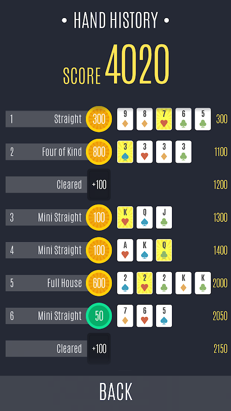 The game starts with 3x3 grid of card piles. Your goal is to clear the board of cards by making hands: pairs, straights, flushes - everything you know from Poker, and more! To get familiar with the rules of Sage Solitaire Poker, check out the in-game rules and screenshots.
