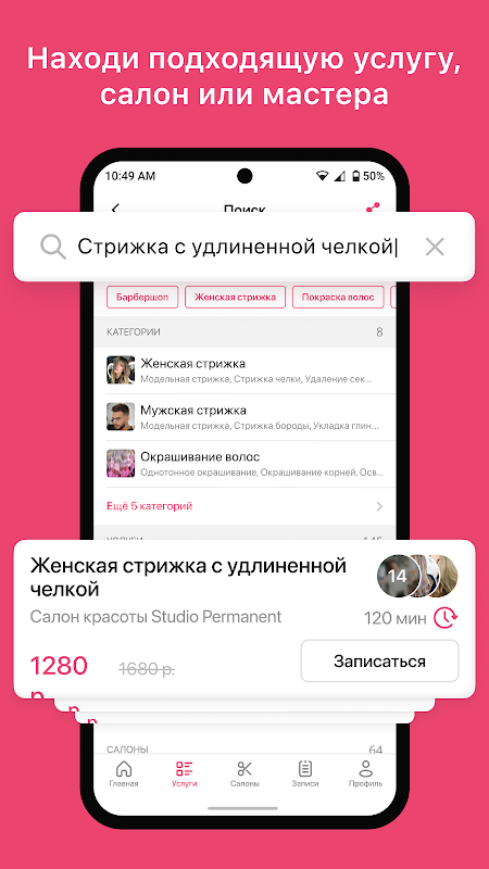 ایک مناسب سروس تلاش کریں، ایک قابل اعتماد ماہر کا انتخاب کریں، ایک اعلی درجہ بندی والے سیلون کے لیے سائن اپ کریں، اپنی آنے والی ملاقات کے بارے میں یاد دہانی حاصل کریں، اور طریقہ کار پر جائیں۔