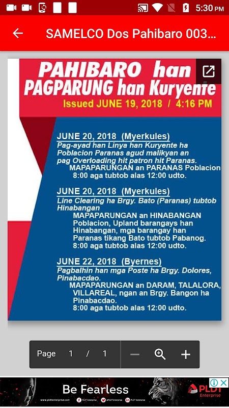 SAMELCO Dos Pahibaro App is an online facility that uses android technology to disseminate information to its members regarding any advisory.