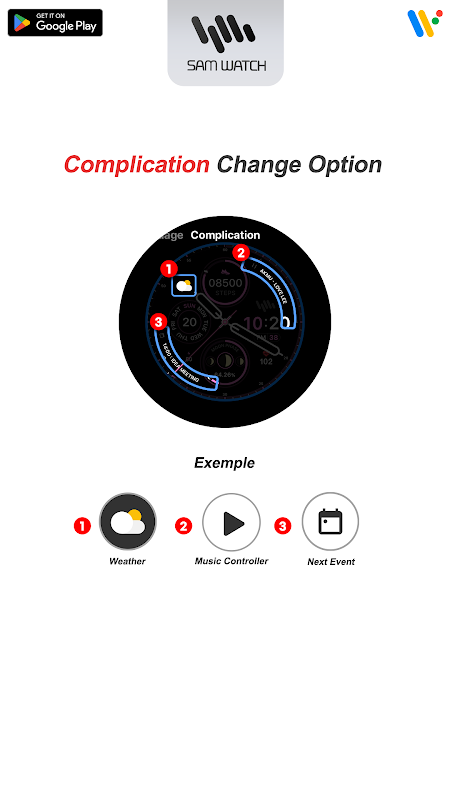 یہ گھڑی کا چہرہ SamWatch سادہ اینالاگ لائن اپ سے مطابقت رکھتا ہے۔