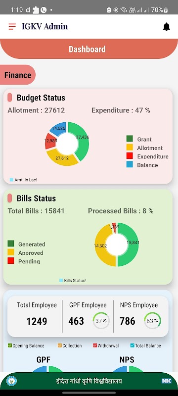 IGKV ایڈمن ایپ ڈیش بورڈ میں تمام معلومات دکھاتی ہے۔