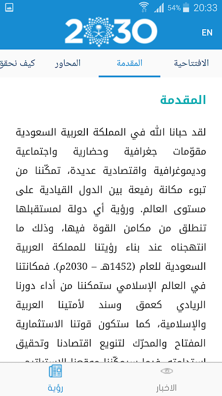 "Saudi 2030" تطبيق يختص بأخر الاخبار والمعلومات عن رؤية المملكة 2030