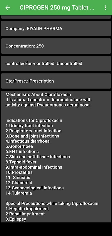 3 - دواسازی اور طبی معلومات پر مشتمل ہے جیسے عمل کا طریقہ کار اور خوراک اور منشیات کی تعامل اور کھانے اور مضر اثرات کے ساتھ تعامل۔