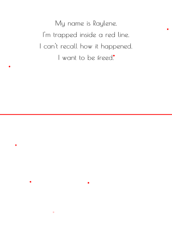 Raylene is trapped inside a thin red line, lost in a strange mechanical city inhabited by menacing geometric blocks operating at clockwork precision. She can't remember how she got herself into this nightmarish situation.
