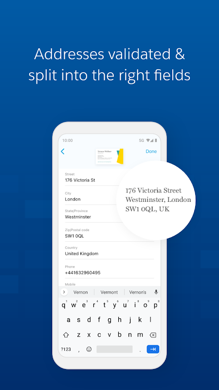 - ہمارا ملکیتی OCR ناقابل شناخت درستگی کے ساتھ ، سیلز فورس کے لیڈز یا رابطوں میں کارڈوں کی فوری طور پر ابھی تک درست ڈیجیٹلائزیشن کے قابل بناتا ہے۔