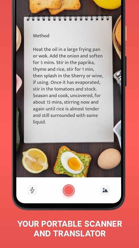 - ٹیکسٹ ٹرانسلیٹر کو چالو کرنے اور تصویر کو متن میں تبدیل کرنے کے لیے "اسکینر" کو دبائیں۔