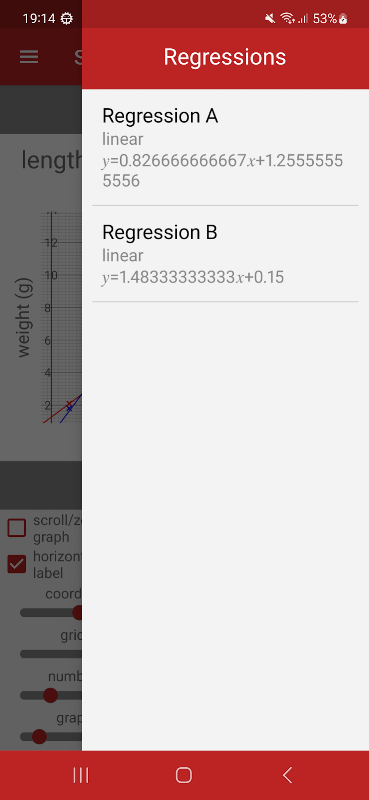 • گراف میں ریگریشن لائنیں شامل کریں: لکیری، چوکور، کیوبک، کثیر الثانی (ڈگری 10 تک)، لوگارتھمک، پاور، ایکسپونینشل، سائن، لاجسٹک، میڈین-میڈین یا پوائنٹ سے پوائنٹ تک سیدھی لائنوں کے ساتھ جڑیں۔