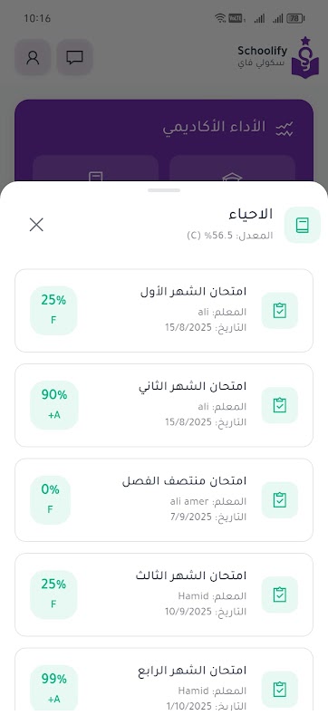 📚 متابعة الدروس والواجبات: یمكن للطالب الاطلاع على الجداول الدراسية، والواجبات المنزلية، والاختبارات بسهولة۔