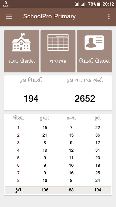 گجرات میں پرائمری اسکولوں کے لئے اسکول مینجمنٹ ایپ۔ وایاپٹرک ، اسکول پروفائل۔