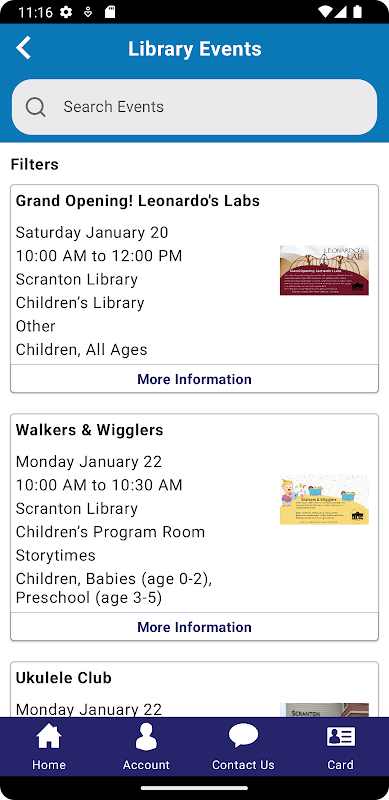 - لائبریری میں ہونے والے واقعات کو دیکھیں اور رجسٹر کریں۔