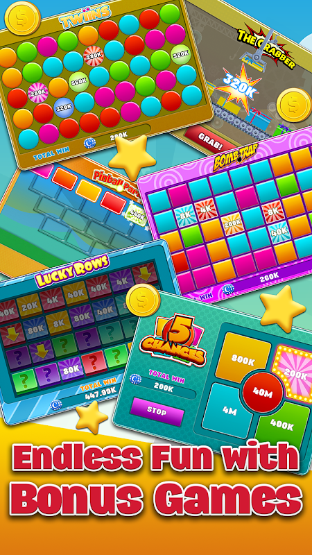 ہر موڈ میں مختلف اور تھیم والے گرافکس آپ کے تجربے کو ایک اور سطح پر لے جائیں گے۔ بڑی جیت آپ کے اوپر کی سڑک پر آسکتی ہے لہذا اپنی آنکھیں اور اپنی جیب کھلی رکھیں! دلچسپ منی گیمز آپ کے دماغ کو متحرک کر سکتے ہیں اور آپ کو مصروف رکھ سکتے ہیں۔ The Grabber, 5Chances, Bonus Wheel, BombTrap, Twiins, Pinball Parlor اور Mini Scratch Card واقعی تلاش کرنے جا رہے ہیں۔