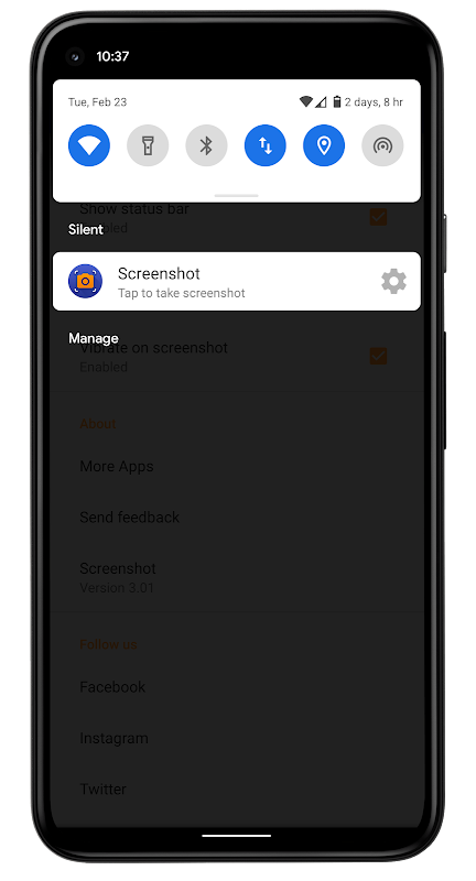 • معیاری android اسکرین شاٹ ٹرگرز کے لیے سپورٹ (والیوم ڈاؤن + پاور اور ہوم + پاور بٹن)
