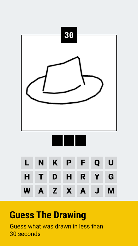 خانوں میں حروف ڈال کر 30 سیکنڈ سے بھی کم وقت میں ایک تیار شدہ ڈرائنگ کا اندازہ لگائیں۔