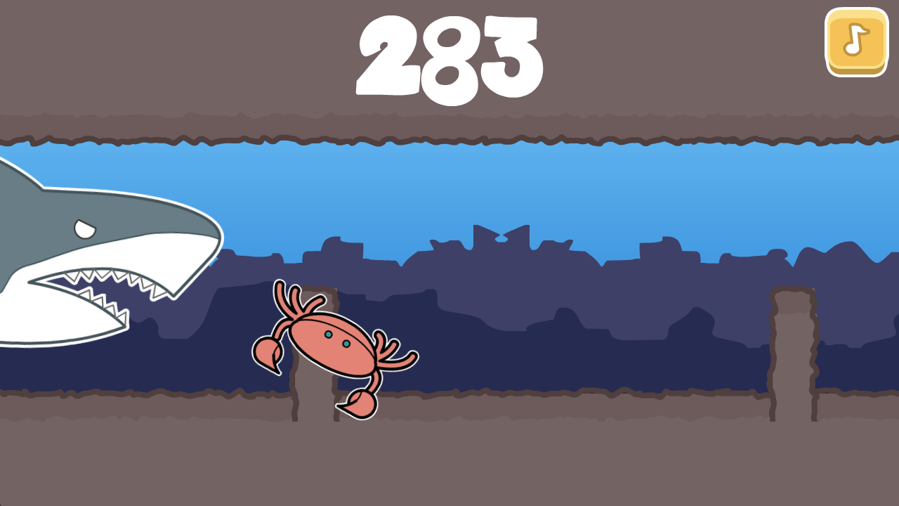 A shark has wriggled into your cave! Scuttle away and eat shrimp to survive!