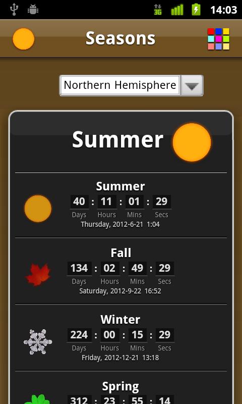 اگلے موسموں (موسم بہار ، موسم گرما ، موسم خزاں ، موسم خزاں ، موسم سرما) کے عین مطابق آغاز کا گنتی۔