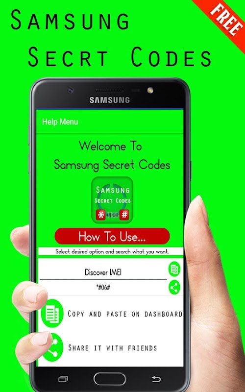 Secret Codes of Samsung application include the secret codes general android and Samsung codes You have to click on copy button, code automatically copied and paste it on dialer by longpress. Secret Codes of Samsung for mobile contains common android secret codes include Network, GPS, Hard reset any device, Password recover, Password forgotten, Software & WH info, auto answer selection, RF Band Selection, Camera Pixels, WLAN Mac Address, Display CSS Code, Bluetooth, WLAN test, Firmware version information, factory tests, PDA, display the IMEI number, Super Mode, Service Menu, Check Update, Reset Device, Unlock the device, Recover Forgotten pattern, Engineering mode, GPS test mode, Machine information, Software Information, Hardware Information, Test Photograph RGB and much more.