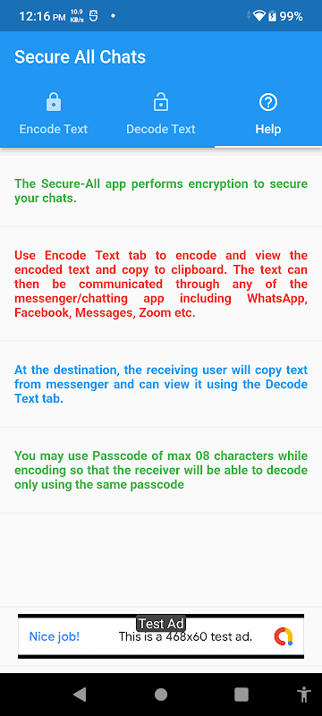 پیغام رساں کے لیے متن کو انکوڈنگ اور ڈی کوڈنگ کے ذریعے تمام مواصلات کو محفوظ بنائیں