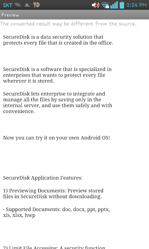 1) 미리보기: 시큐어디스크에 저장된 파일을 다운로드 없이 앱에서 확인하는 기능