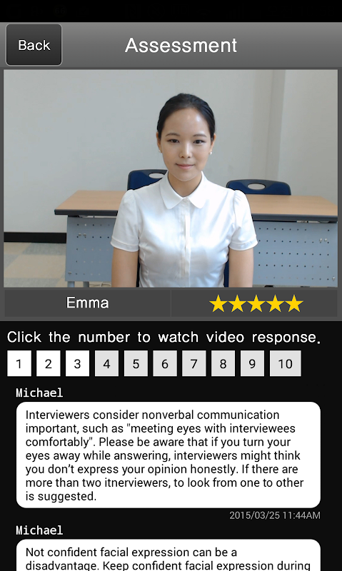SelfView provide access to over 17,000 pre-recorded interview questions in 13 languages and more than 4,500 samples and tips for more information. Students can practice their own interviews and SelfView automatically provide a performance score for each interview, allowing students compete against others on a leaderboard.