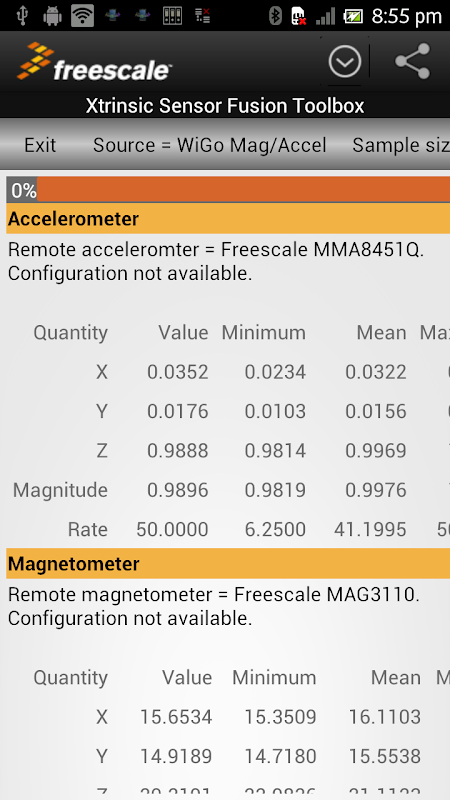 This educational application by Freescale Semiconductor teaches you about sensor fusion and lets you experiment with various fusion options. It does not REQUIRE that your Android device use Freescale sensors. It is compatible with the Freescale Sensor Fusion Library for Kinetis MCUs. Compatible hardware and embedded software are available at http://www.freescale.com/sensorfusion.