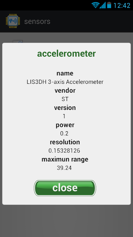 En la lista podrá ver de cuantos sensores se compone su teléfono o tablet. Incluye acelerómetro, sensor magnético, orientación, giroscopio, temperatura, luz, presión, proximidad, gravedad...