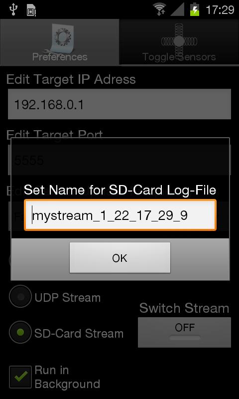 Acquire the Sensor data of Your Smartphone and stream it to SD-Card or a Client.