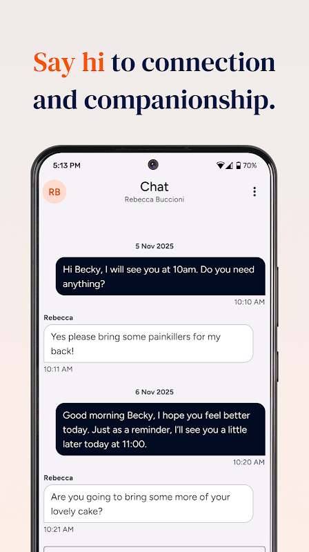 دیکھ بھال کرنے والوں، دوستوں اور خاندان والوں کے لیے سینٹائی ایپ سینٹائی اسپیکر کی آسان ترتیب کو قابل بناتی ہے اور چیٹ، خریداری کی فہرستوں اور نگہداشت کے نوٹس کے ساتھ ساتھ صارف کی سرگرمی اور تندرستی کے بارے میں AI سے چلنے والی بصیرت فراہم کرتی ہے۔ دیکھ بھال کرنے والے اور کنبہ کے ممبران اس وقت اطلاعات موصول کر سکتے ہیں جب مسائل ہوں، مثال کے طور پر جب دوائی ختم ہو گئی ہو، فوری خریداری کی ضرورت ہو، یا تھوڑی دیر سے کسی حرکت کا پتہ نہ چلا ہو۔