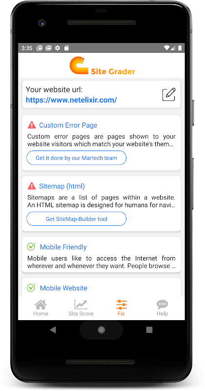 بس اپنی ویب سائٹ کا URL ٹائپ کریں اور آپ کو 25 انفرادی پیرامیٹرز کی بنیاد پر ایک ویب سائٹ گریڈ ملے گا ، اور ساتھ ہی ان غلطیوں کی ایک فہرست مل جائے گی جو آپ کے گوگل رینک کو نقصان پہنچا رہی ہیں ، یہ سب کچھ 30 سیکنڈ سے بھی کم عرصے میں ہوگا!