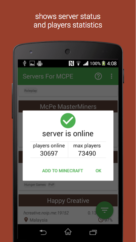 Find Servers for Minecraft PE, add from Minecraft Server List to MCPE in 1 click