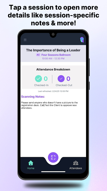 EventStack کے صارفین آپ کے ایونٹ کے رجسٹریشن فارم سے سیشنز، ایریاز، ایونٹس وغیرہ بنانے اور فیلڈز پر مبنی پیرامیٹرز سیٹ کرنے کی صلاحیت رکھتے ہیں۔ ہم ایک API کا استعمال کر سکتے ہیں یا رسائی کو کنٹرول کرنے کے لیے اپ لوڈ کر سکتے ہیں۔ سیشن ٹریکر ایپ میں آپ کی ترتیب کردہ منطق کے ساتھ تمام سیشنز آپ کے منتظر ہوں گے!